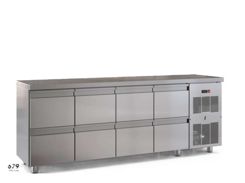 Επαγγελματικό ψυγείο πάγκος συντήρηση με 8 συρτάρια GN από ανοξείδωτο χάλυβα.