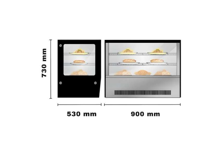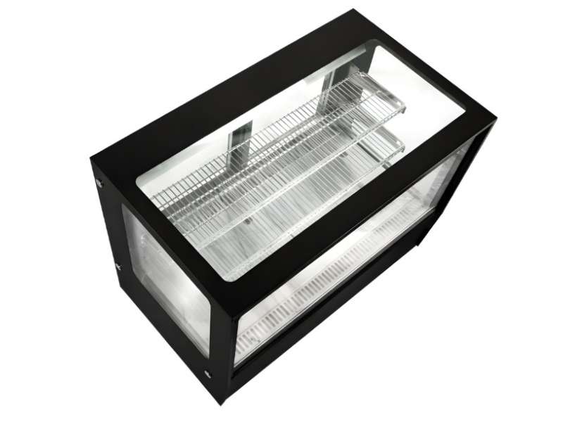 Ψυχόμενη επιτραπέζια βιτρίνα χωρητικότητας 140Lt, με 2 ράφια ρυθμιζόμενα και φωτισμό LED. Κατασκευασμένη βάση από ανοξείδωτο ατσάλι 201, με διπλά τζάμια και 2 πόρτες συρόμενες. Σύστημα βεβιασμένης ψύξης και ηλεκτρονικός θερμοστάτης. Εύρος θερμοκρασίας 2~8?.