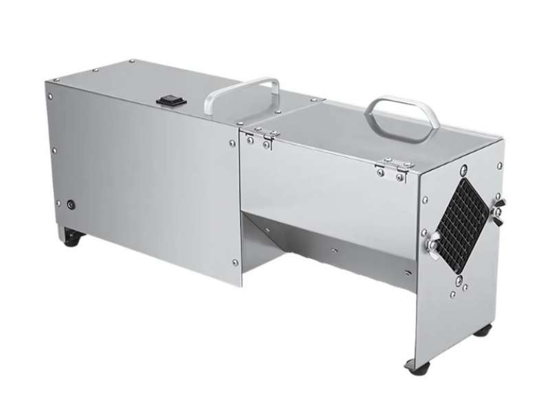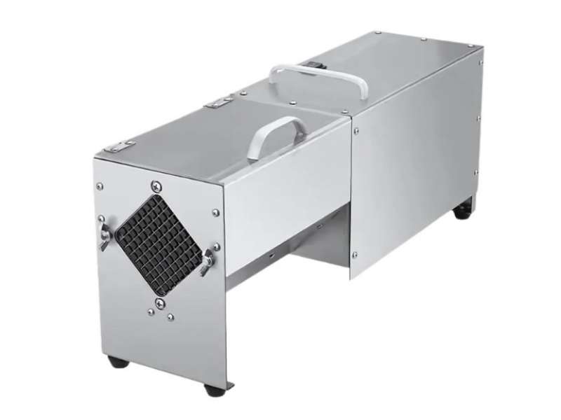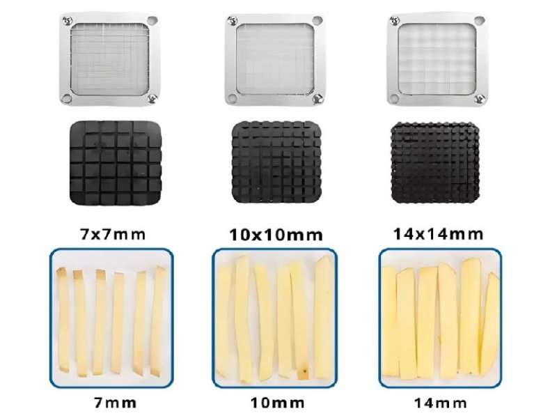 Εύχρηστη συσκευή βαρέως τύπου. Κόβει σε 3 διαφορετικά μεγέθη με μαχαίρι 7mm, 10mm και 14mm. Με αντιολισθητικό πόδι, κατασκευασμένο από καουτσούκ για να σταθεροποιεί όλο το μηχάνημα. Κατασκευασμένο από ανοξείδωτο ατσάλι για να εγγυάται την αντοχή του στη φθορά από το νερό ή τα όξινα-αλκαλικά τρόφιμα. Εύκολο στη χρήση, εύκολο στο καθάρισμα, με διακόπτη ενός κουμπιού, μπορεί εύκολα να ψιλοκόψει τα τρόφιμα, με λίγη δύναμη. Το μηχάνημα μπορεί να χρησιμοποιηθεί για την κοπή φρούτων και λαχανικών μεσαίου μεγέθους, όπως πατάτα, κολοκυθάκια, κρεμμύδι, αγγούρι, καρότο, μήλο και άλλα.