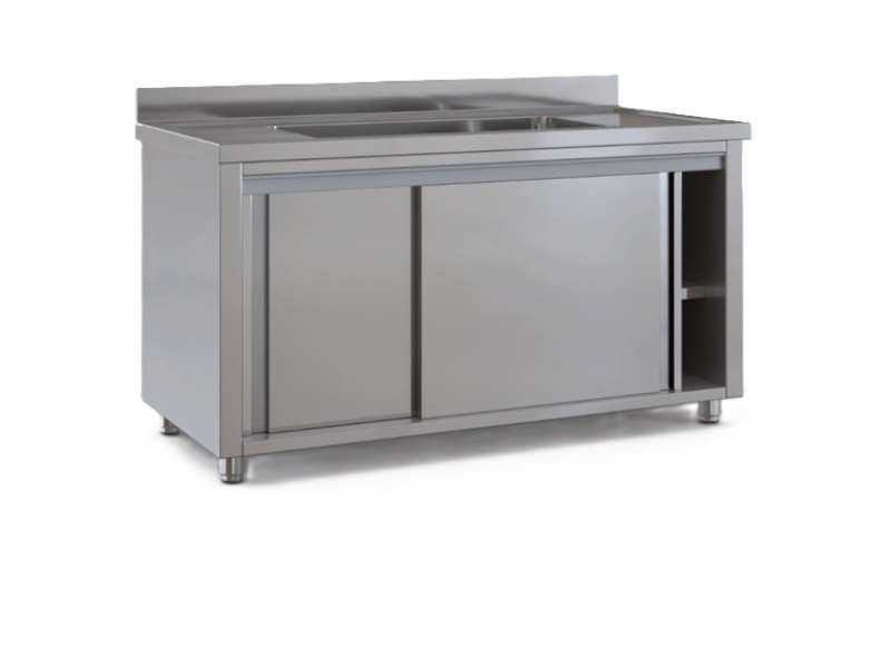 Λάντζα κλειστή 160x70x87cm με συρόμενες πόρτες με 1 μεγάλη γούρνα 96x51cm - LANK160.B.1