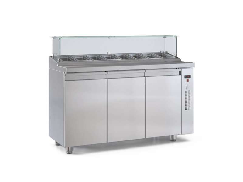 Επαγγελματικό ψυγείο salad bar συντήρηση με 3 πόρτες από ανοξείδωτο χάλυβα χωρίς μηχανή.