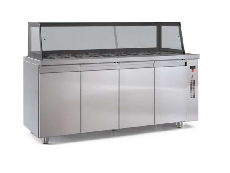 Επαγγελματικό ψυγείο σαλατών συντήρηση χωρίς μηχανή με 4 πόρτες από ανοξείδωτο χάλυβα.