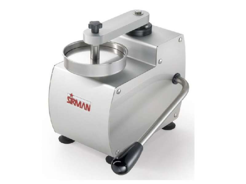 Πρακτική και στιβαρή πρέσα για παρασκευή μπιφτεκιών με 3 διαφορετικά μεγέθη καλουπιών. Η μηχανή είναι κατασκευασμένη από ανοδιωμένο αλουμίνιο και ανοξείδωτο ατσάλι. Ειδικό πατενταρισμένο σύστημα στα καλούπια για άριστο αποτέλεσμα. Το μηχάνημα διατίθεται χωρίς τα καλούπια και μπορεί ο ενδιαφερόμενος να επιλέξει τα μεγέθη που χρειάζεται. Διαθέσιμα μεγέθη διαμέτρου O mm 100, 130,150 και 180 κατόπιν παραγγελίας. Αυτόματο σύστημα ανύψωσης χάμπουργκερ για εύκολη αφαίρεση του προϊόντος.